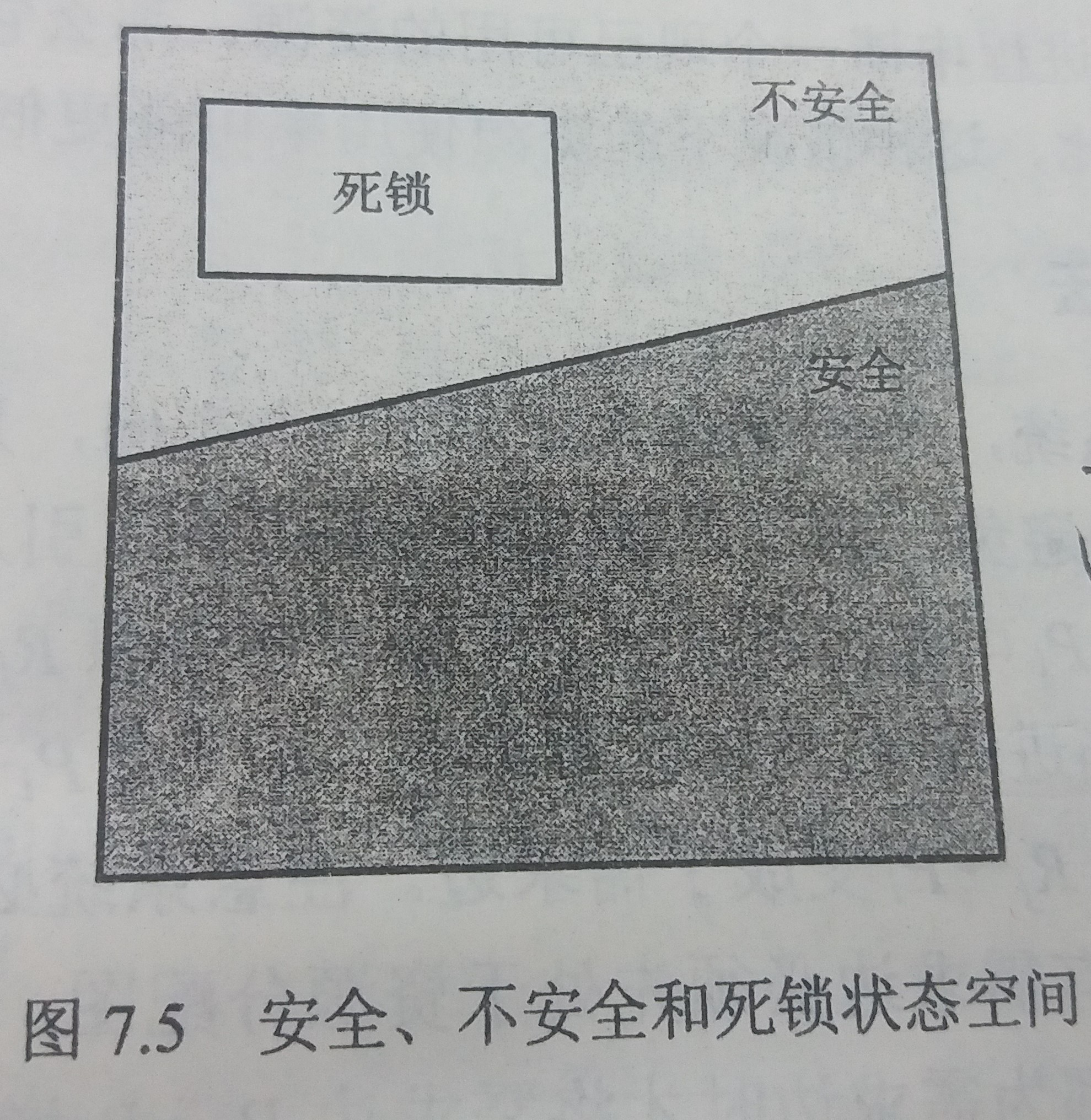 死锁状态是不安全状态的子集,如图